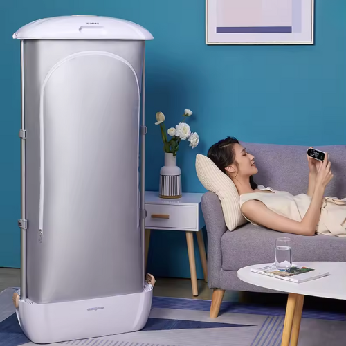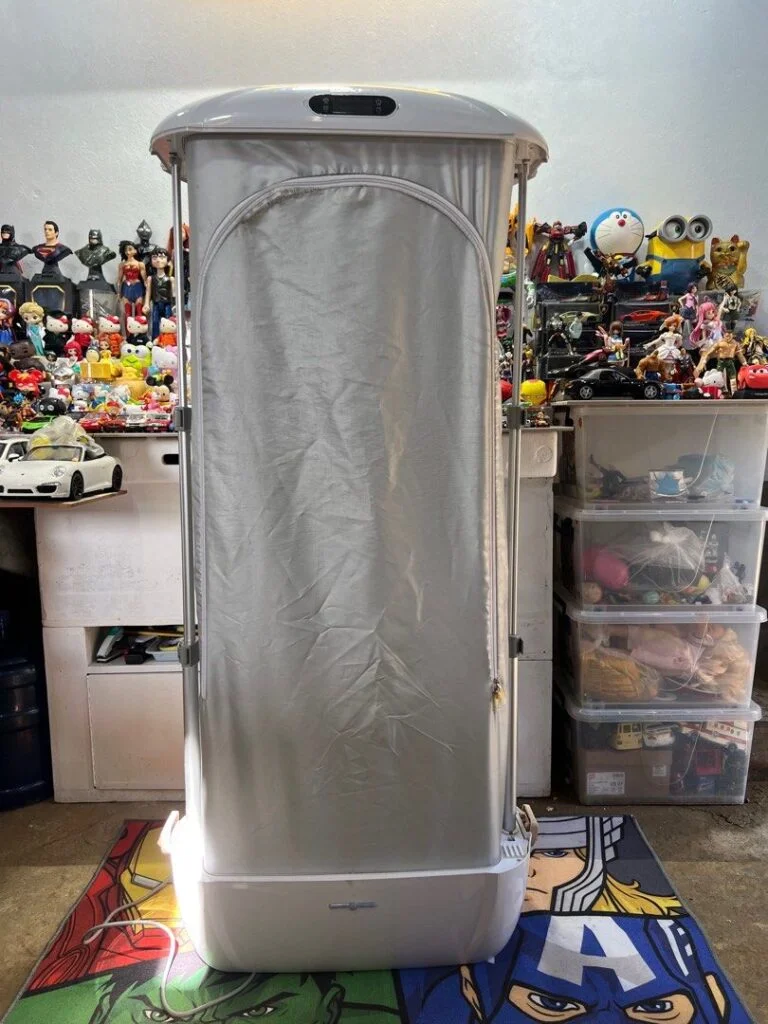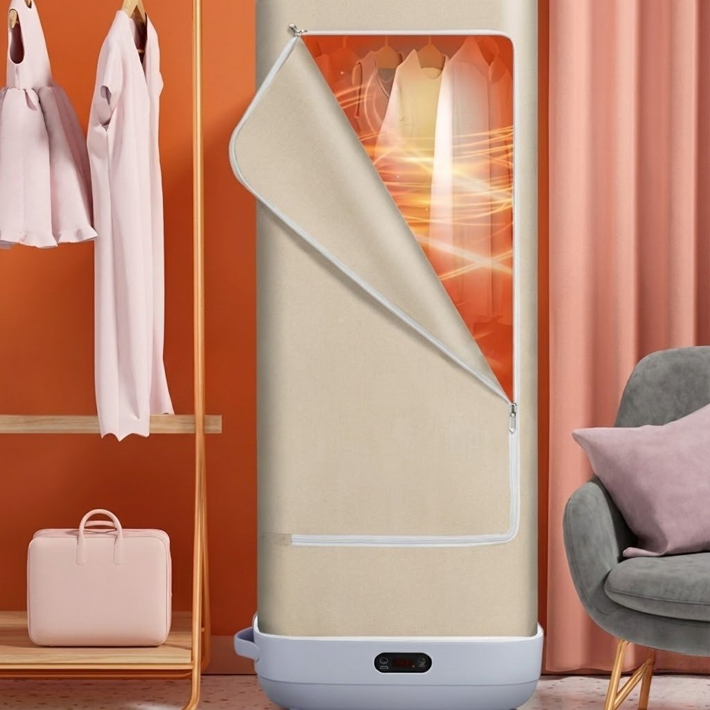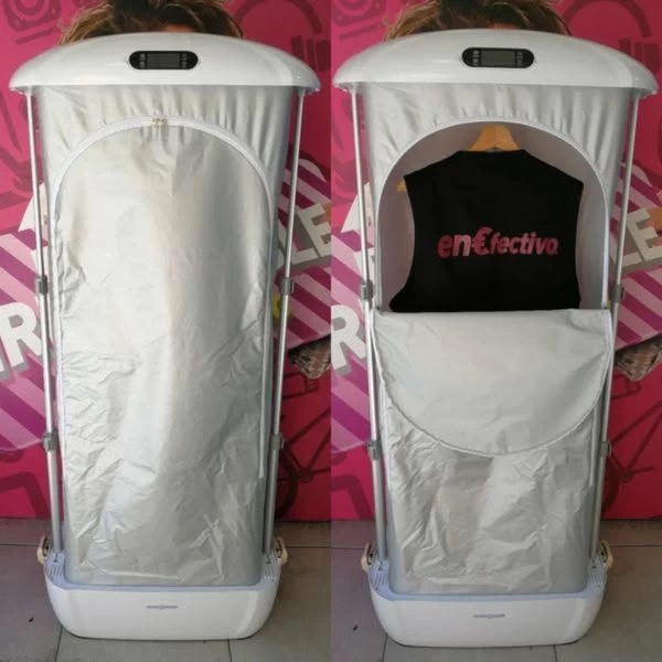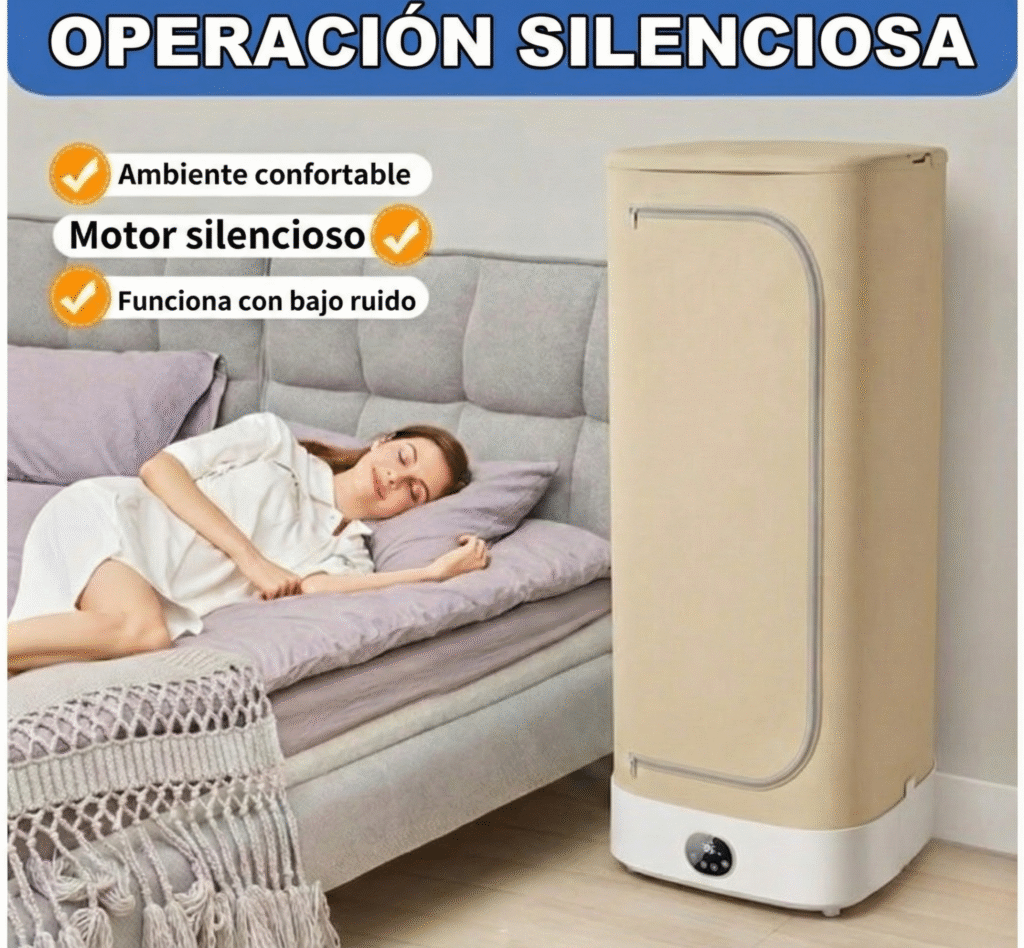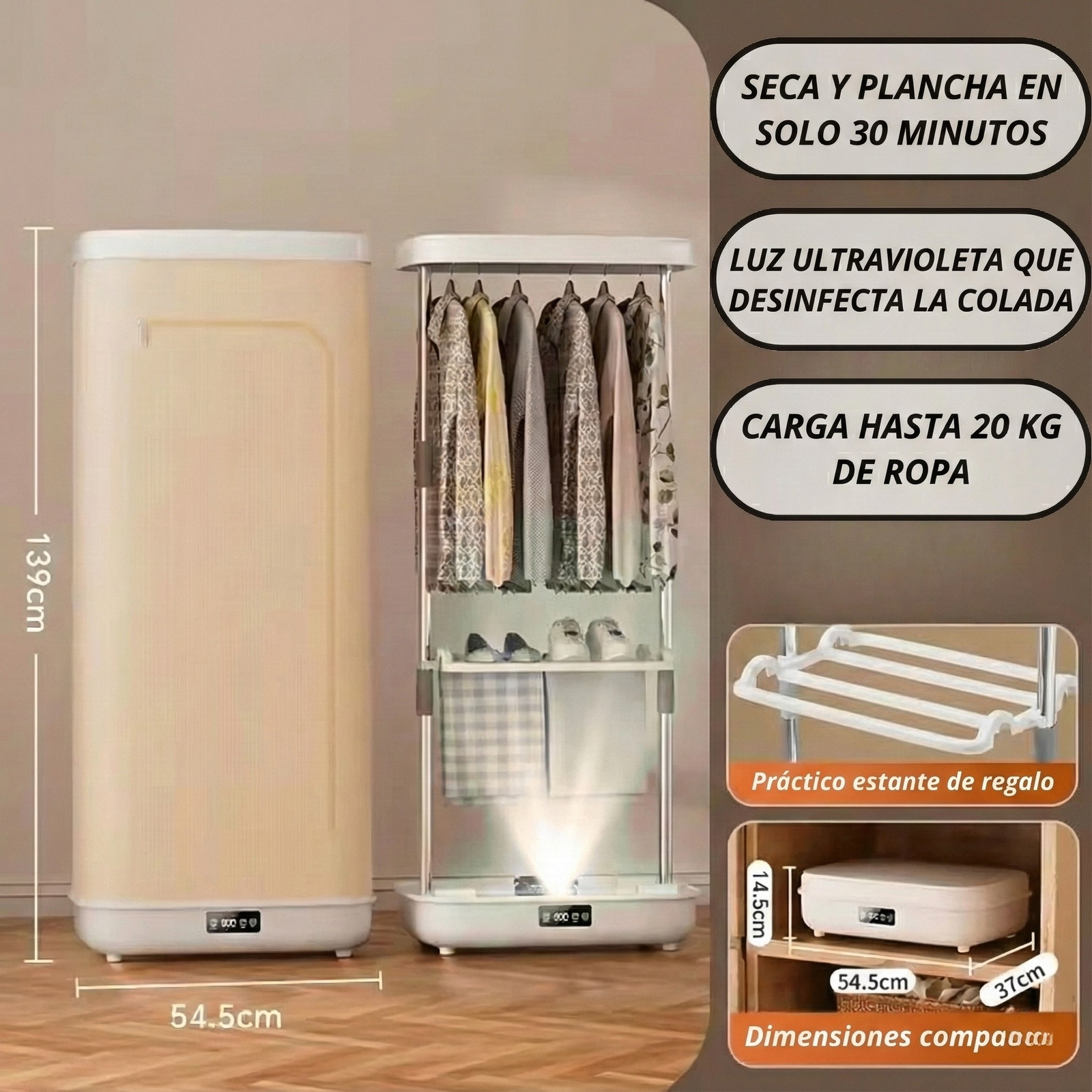 Imagina colgar tus prendas mojadas dentro de un box compacto e higienizado. Pulsas un botón y, en pocos minutos, recuperas tu ropa no solo seca, sino desinfectada, caliente y lista para guardar o ponértela.